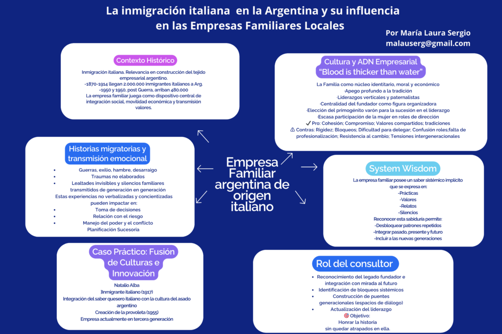 La inmigración italiana dejó una huella profunda en la empresa familiar argentina, influyendo en sus valores, estilos de liderazgo y dinámicas relacionales. Reconocer la historia migratoria y el ADN empresarial de origen permite comprender muchos de los desafíos actuales vinculados a la transmisión generacional, la profesionalización y la toma de decisiones.